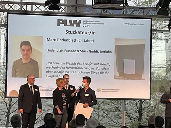 Marc Lindenblatt als 1.Landes- und Kammersieger im Wettbewerbsberuf Stuckateur geehrt.